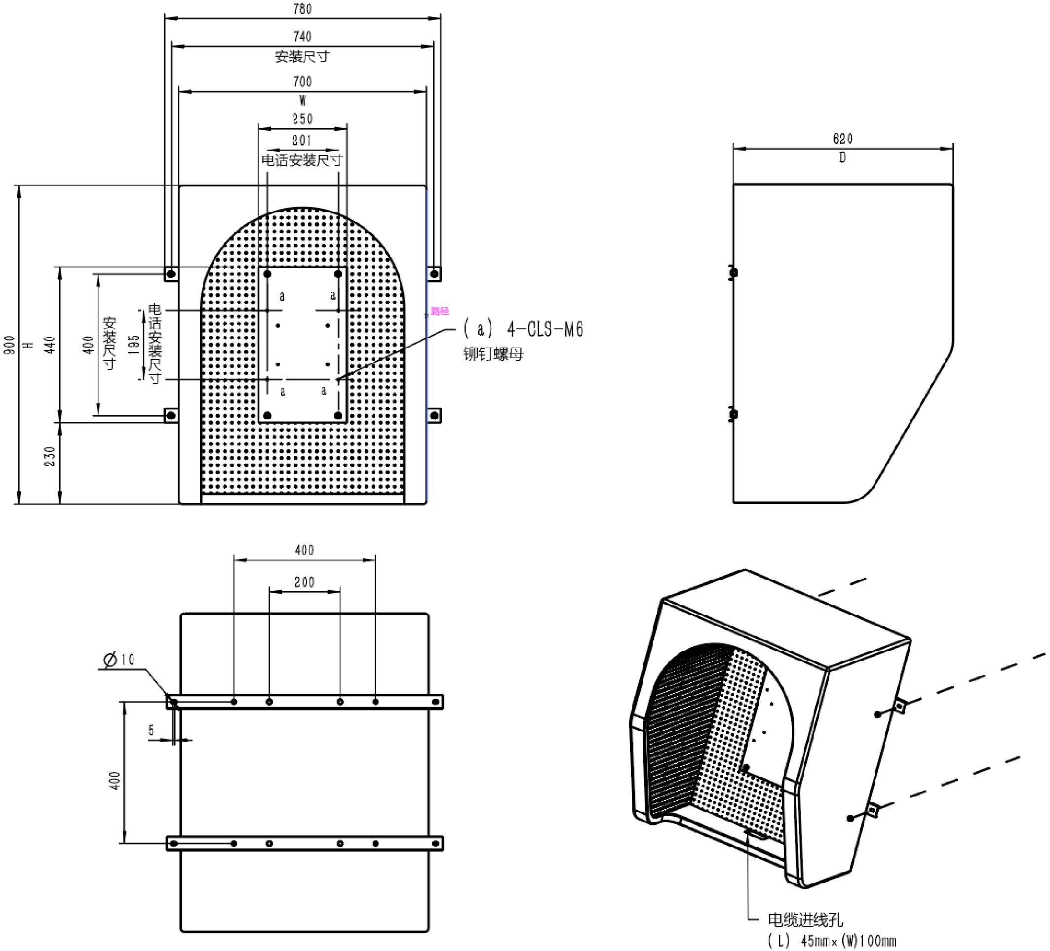 ● 隔音罩内部可安装话机使用,承重高达30kg