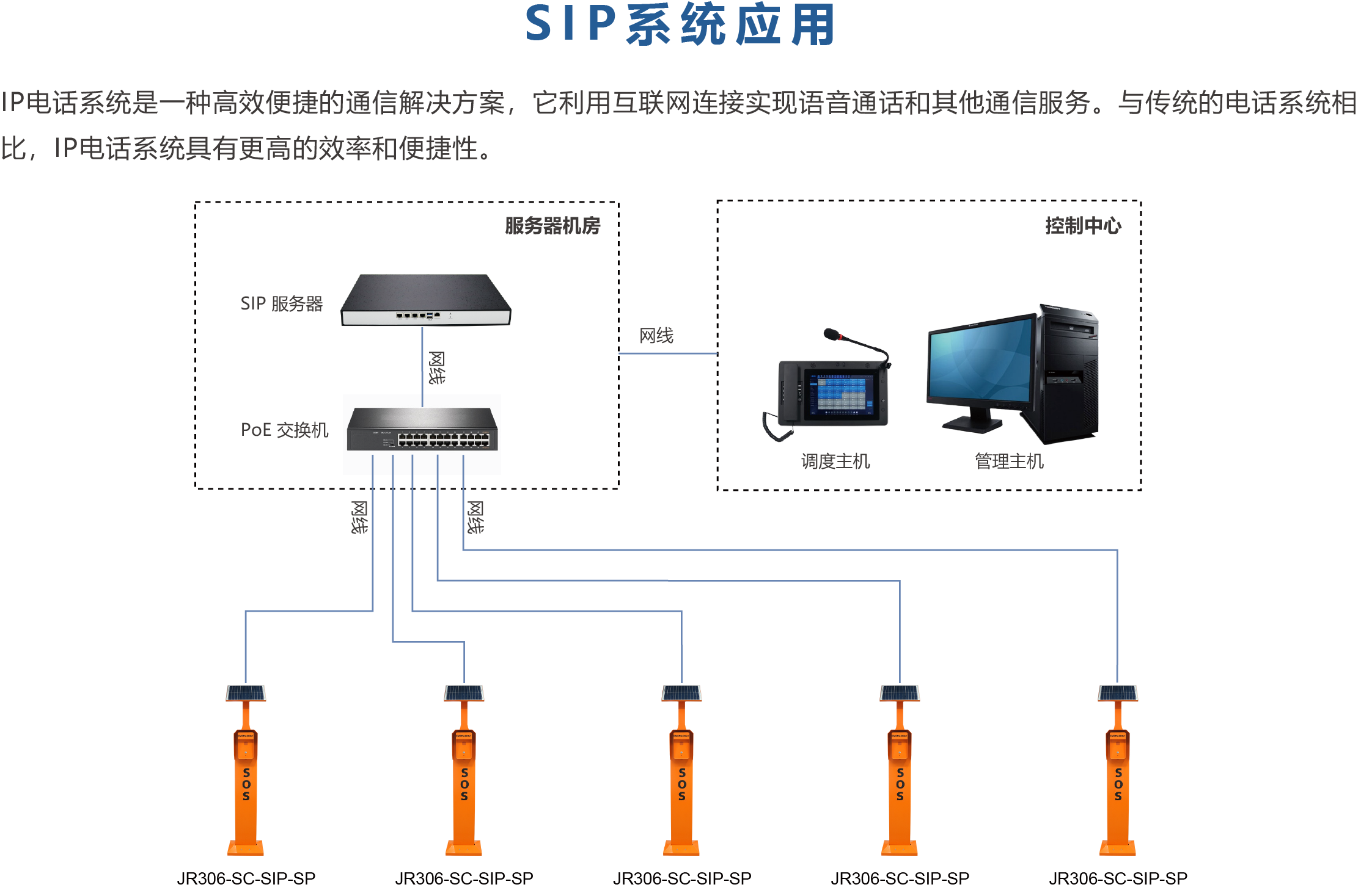 支持IP所需的网络连接,将网线接入所需环境中与电话连接,只需安装和维护一个语音和数据基础设施,就可大大减少时间、运营维护和通信成本。这些电话立柱可以承受极端温度、恶劣天气条件、