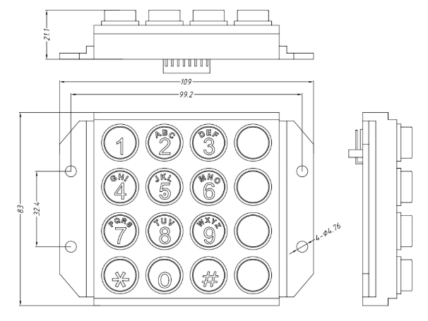 - Includes twelve standard keypad buttons plus four additional buttons which can be used for speed dial calling