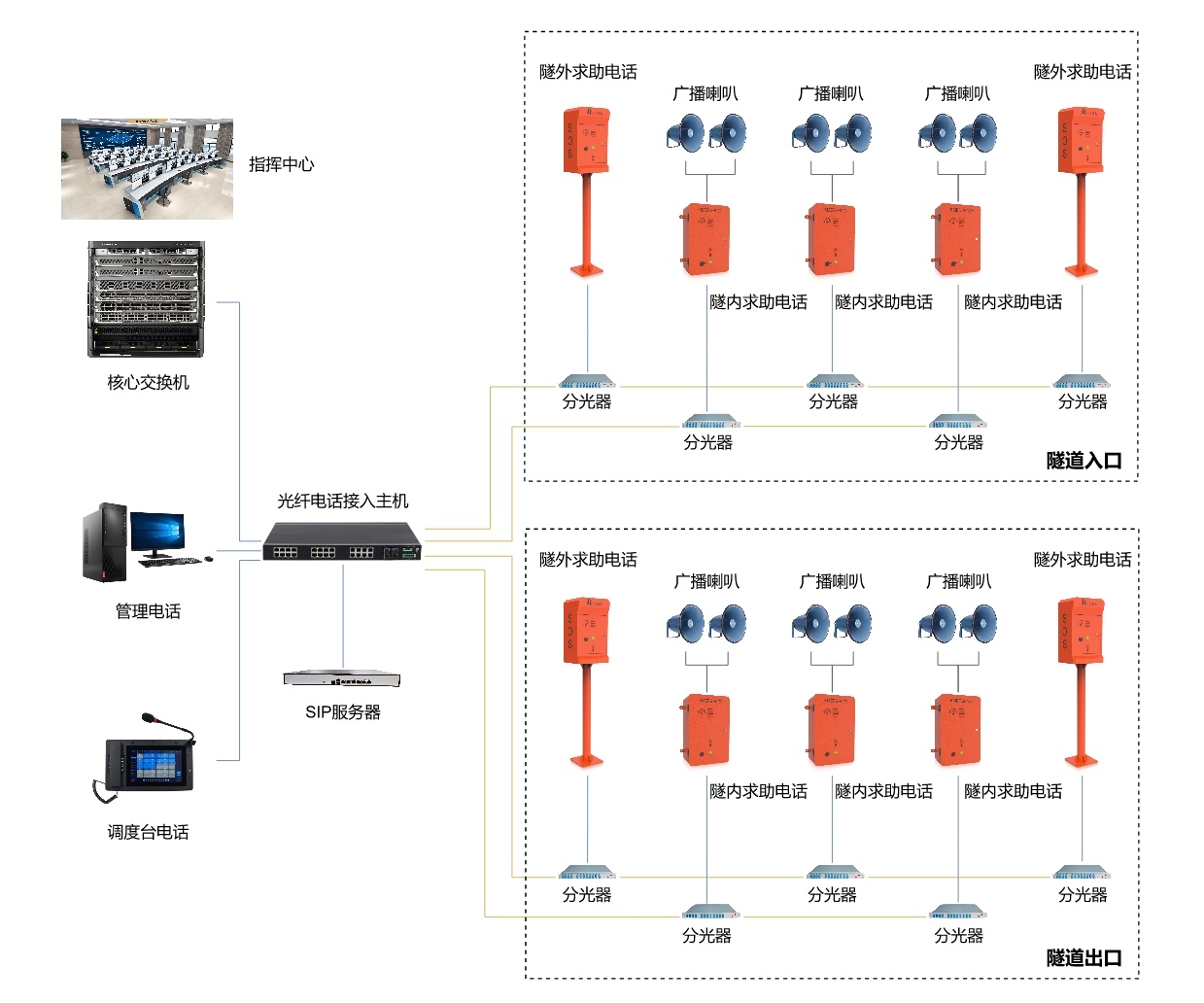 我们的解决方案针对隧道狭长且复杂的环境特点,通过构建 三层紧急电话对讲系统,以确保实现即时通信与快速应急响应。